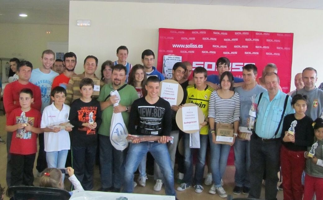 El torneo más numeroso y de mayor potencial deportivo, el incluido en el VIII Circuito Provincial de Ajedrez, reunió a 65 jugadores y como es habitual estuvo presidido por la igualdad, ya que 4 jugadores finalizaron en cabeza con 5 de los 6 puntos posibles, seguidos por otros 5 a medio punto. El desempate favoreció al tarraconense afincado en Toledo Ramón Cid García que de esta forma se hizo con el jamón que caracteriza este torneo. Segundo (y acreedor del queso) fue el número uno de nuestro equipo absoluto, Juan Carlos Sanz Menéndez; tercero (y premiado con un chorizo) el murciano Iván Lucas Vega y cuarto el quintanareño Isaac Lozano Osorio, que obtuvo nuestras famosas marquesitas. Hasta el sexto clasificado disfrutará de los dulces de nuestras panaderías. La primera clasificada femenina, optando hasta el final al premio absoluto (acabó sexta a medio punto del campeón) fue nuestra María Alonso Vara, mientras sus compañeros de club Samuel Bustos Bernardo y Mario del Río Perezagua lideraron las categorías sub-16 y sub-12 respectivamente. El primer premio para los veteranos (y la botellita de vino, premio para el podium de mayores de 50) se fue a Alcalá de Henares a las manos de Mariano Llerena Achútegui.